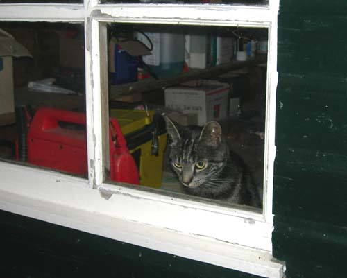 Mijn Hildo krijgt langzaam een beetje ervaring met ruiten verwijderen. Dit keer bleef het ruitje zelfs heel en knapte alleen een glaslat. De buurvrouw is op vakantie, maar er was iemand langs geweest die de schuur inging. Ik erachteraan natuurlijk. Snap niet dat mensen, zonder te kijken of ik er misschien nog zit, de deur weer dichtkwakken. Hildo heeft van de buurvrouw laatst haar huissleutel gekregen. Persoonlijk vind ik dat niet zo'n slim idee want zelf vertrouw ik mijn Hildo niet verder dan dat ik hem zie, maar zodoende kon hij wel in het huis komen. Maar de sleutel van de schuur kon hij natuurlijk weer niet vinden. Sukkeltje.