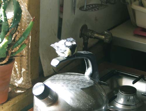 Dát had Mijn Hildo niet verwacht. Cadeautje! Dat die koolmees er iets verfrommeld uitziet, daar kan ik verder ook niets aan doen. Mijn vriendjes stribbelen altijd zo tegen! Geeft niks, dat ben ik gewend. Hildo leek niet zo blij met zijn presentje, maar nam hem wel aan. Ging ermee naar buiten en ik mocht alweer niet mee. Ik snap dat niet, hij kan hem toch gewoon opeten waar ik bij ben?