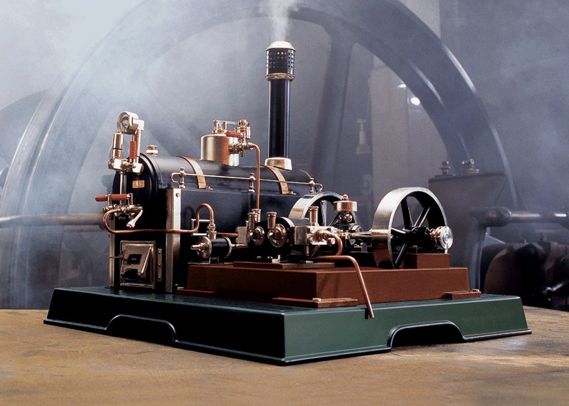 Historie Omdat Märklin weliswaar nog wel bestaat, maar Märklin stoommachines nu niet meer gemaakt worden verdient Märklin dus zeker een plaatsje in Hildo's 'stoom klassiekers'. Märklin is een Duitse fabrikant die vrijwel iedereen kent, jawel, die van de model treintjes. Dat Märklin evenzo stoommachines gebouwd heeft is, u verbaast zich misschien, toch onbekend. Märklin begon in het jaar 1859 als Gebrüder Märklin und Compagnie, en in eerste instantie werd er gewoon kinderspeelgoed gemaakt. De stoommachineproductie nam een aanvang eind 19e eeuw en hielden dit vol tot de vroege jaren 60 van de 20ste eeuw. Ook nu zijn de oude Märklin machines zeer gewild en dat vertaalt zich in de prijs. Ze kunnen zeker tot de duurdere merken gerekend worden. In de herfst van 2004 heeft Märklin voor het eerst weer een stoommachine in het assortiment opgenomen, de 16051, en de productie is kort daarna ook alweer beëindigd. Hoeveel er gemaakt zijn is Hildo onduidelijk, maar er lijkt geen twijfel over te bestaan dat dit wederom een verzamelaars exemplaar gaat worden die niets anders zal doen dan in prijs stijgen. Een indrukwekkend model welk een vrijwel exacte kopie is van de oude Märklin 4158 compound stoommachine (1 kleine hoge druk cilinder en daarnaast een grotere lage druk cilinder die werkt op de afgewerkte stoom van de hoge druk cilinder) die door Märklin rond 1930 werd geproduceerd. Stevig aan de prijs met tegen de duizend Euro, maar je krijgt er wel wat voor. Zeer mooie machine, meent Hildo, en een pronkstuk in iedere vitrine of kast.