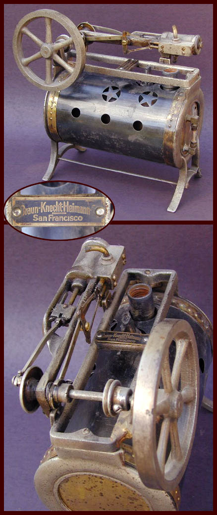 Weeden 34, 9 1/2" x 5 1/2" x 9 5/8" hoog. Het erop ge-popnagelde plaatje met 'Braun-Knecht-Heimann San Francisco' laat duidelijk zien dat ook hier de Duitsers dikke vingers in deze Amerikaanse stoommachine pap hadden.