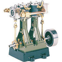 Stuart Compound Launch Een van de weinige compound machines die aangeboden word. Bij compound motoren is de eerste cilinder het kleinst, dit is een 'hoge druk cilinder'. De afgevoerde stoom gaat vervolgens door naar de tweede cilinder die, omdat de druk lager is, van groter formaat is. Dit soort motoren werden vroeger in stoomboten gebruikt. Compound motoren zijn de meest efficiënte stoommachines. Hoogte 5 1/2", cilinder bore 3/4" en 1 1/4". Voor beiden is de stroke 7/8".
