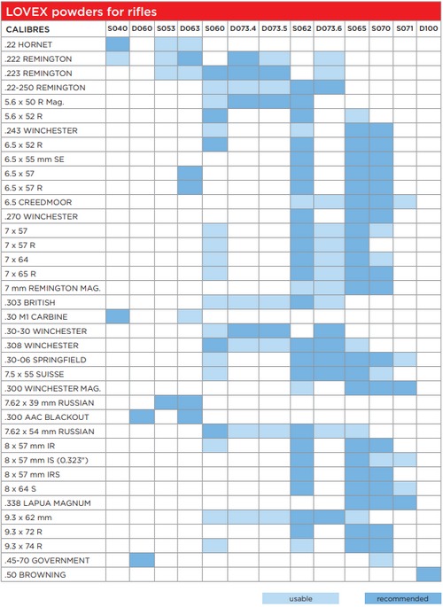 4 juli 2020. 2019 Lovex kruit overzicht Deze afbeelding komt uit de 2019 Explosia reloading guide, de nieuwste die er op dit moment is. Wilt u de complete 2019 reloading guide als PDF, klik hier, of ga zelf naar www.explosia.cz voor de PDF en nog veel meer info. In de PDF staan alle rifle en hand gun reloading data, waarschuwingen, en uitleg over van alles en nog wat.