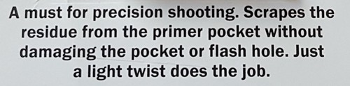 ![]() 24 september 2020. Hulzen schoonblazen Dit zijn alle hulzen waarbij het zo mis ging met de LEE trimmer, ze werden scheef afgebraamd. Hildo gaat niet zitten zoeken welke nog wel en welke niet acceptabel zijn. Ze zijn full length gesized, getrimt en hij blaast ze nu schoon. Oefen ammo De 55 grain kogels, die toch niet goed schieten, gaat hij opmaken met het double base D063 kruit wat alleen voor lichte kogels geschikt is. Resultaten zullen sowieso niet bijzonder zijn met de 55 grain kogel. ![]() 27 september 2015. Chinese AR15 montering van Aliexpress Barbara is een AR15 en daarbij zit de kolf recht achter de loop om opslag tegen te gaan. Dat principe werkt prima maar daarvoor is wel een extra hoge montering nodig zodat u wat meer ruimte hebt achter de kijker. De Chinese oplossing Sites als Alibaba, Wish, Aliexpress etc. kent u vast. Spulletjes voor een prikkie. Deze montering voor een richtkijker is wat hoger als die Hildo nu heeft, met snelsluiting en dat alles voor maar iets van 15 US dollar incl. verzendkosten. Te mooi om waar te zijn! Na een paar weken... binnen! De montering komt relatief vlot binnen. Op het eerste oog lijkt het heel wat tot Hildo een poging doet het ding te monteren. Afstelling van de snelsluiting wil niet goed en het hele spul is krakkemikkig en van gegoten aluminium en daarvan is de maatvoering zonder te frezen... beroerd. Eenmaal op het wapen zit het niet bepaald strak erop. Misschien is dit nog een beetje leuk voor een replica die alleen aan de wand hangt. Of misschien voor airsoft, Hildo weet niet hoe low-end de eisen daar misschien zijn, maar voor de montage van een echte richtkijker op een echte AR15 is dit van geen enkele kant bruikbaar. Hildo heeft al vaker wat Chinese spulletjes besteld, de kwaliteit is soms goed en soms dubieus maar dit ding is het eerste, misschien niet geheel onverwacht, buitengewoon beroerde troep. En die goedkope 20 dollar red dots? Niet voor Hildo! ![]() ![]() A) 15 oktober 2020. Hornady Cam-Lock trimmer (#050140) Dat Hildo helemaal klaar was met het LEE systeem is niet gelogen. Dit mooi-rood-is-niet-lelijk draaibankachtig apparaatje is één van de goedkoopste hulstrimmers, op LEE na, en wordt met alles wat op de foto staat geleverd. Geen rommel meer op de pers, snel hulzen verwisselen met het cam-lock systeem, precisie trimmen met een constante trimlengte en optioneel motorisch aan te drijven met een accuboormachine of iets dergelijks. Het frame is een aluminium gietstuk en alle onderdelen, inclusief de pilots, zien er zonder meer netjes uit. Ze zijn magnetisch en niet gecoat dus echt roestwerend zal het mogelijk niet zijn. Beter trimmen? Een verschil met veel andere trimmers is dan de huls naar de freeskop toegebracht wordt. De freeskop steek niet ver uit de behuizing (zonder lagering) en slingert daarom misschien minder snel als bij trimmers als RCBS, Lyman, Forster of Redding. Maar er zit gewoon teveel speling op, jammer dat er geen echt lager in zit. Als dit een klep en klepgeleider zou zijn was de kop heel erg aan revisie toe... Maar misschien is deze grote tolerantie wel nodig zodat de huls zich beter kan zelf-centeren? De doos waarin de trimmer zit? Duhh, lekker belangrijk Misschien niet belangrijk, maar erg stevig en uitzonderlijk mooi van een soort chroom-rood met aantrekkelijke plaatjes en zelfs een gedeeltelijk verchroomde binnenkant wat echt een high-end product suggereert. Mooie layout ook en Hildo wilde hem u niet onthouden. Het tilt deze trimmer relatief goedkope trimmer gevoelsmatig toch naar een hoger niveau. ![]() C) 15 Oktober 2020. Hornady Power adapter (#050145) Optionele adapter om de Hornady Cam Lock trimmer te kunnen aandrijven met elektrisch gereedschap, zoals een boormachine. Het zwengelen is voorbij! ![]() ![]() E) 15 oktober 2020. Hornady Chamfer and deburr tool (#050117) Dit gereedschap is om een huls handmatig te ontbramen, ene kant is voor buiten, ander voor binnen. Niet zo mooi en precies als in een trimmer want uw hand is niet echt stabiel. Toch handig voor de hulzen die Hildo nu al ingekort heeft met de LEE trimmer en getumbled, maar nog niet ontbraamd. Sowieso handig om deze te hebben want zonder zitten als u er eentje nodig hebt is niet fijn en prijstechnisch valt het best mee. Serieus haaks en precies ontbramen kan natuurlijk ook in trimmer, maar die freesjes zijn ook al weer optioneel en Hildo heeft goede hoop dat hij ze niet meer nodig met het RCBS 3-way cutter head systeem. ![]() 22 oktober 2020. Hornady nr. 16 shellholder Dit is de enige shellholder die gebruikt kan worden met de Hornady hulzentrimmer, deze heeft een binnendiameter met een gat wat groot genoeg is voor het asje van hun cam lock systeem. |