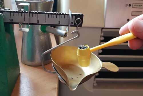 20 augustus 2020 (4). Kruitlading check Met de kruitladingen voor 223 ammo kan in principe weinig misgaan, het is goed, leeg of dubbel. Een dubbele lading past niet en leeg... dan gebeurt er niets.