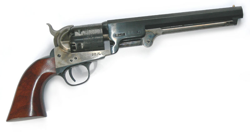 Originele Colt London uit 1854 ter vergelijk. Zoek de verschillen. De trekkerbeugel is duidelijk platter. Andere verschillen zijn er ook, maar Uberti heeft zijn best wel gedaan.