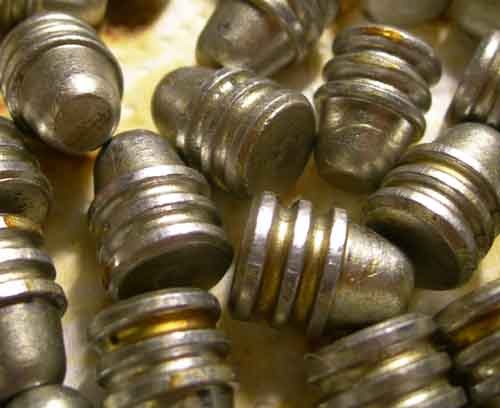 2 februari 2014. Het geheim van mooie wielloodkogels De eerste gietsessie met van wiellood gegoten kogels liet te wensen over. Hildo gelooft toch dat er iets van zink in het lood gebruikt wordt, misschien een alternatieve manier van harden door de wielloodfabrikanten? Kan maar zo want Zink is veel harder dan lood. Hildo heeft daarom elk wiellood op hardheid gecheckt voordat deze de smeltpot inging. Kwestie van prikken met een scherp voorwerp. Er zaten geen afwijkende wielloodjes tussen. Hoe kogels van wiellood wél mooi worden Het gietblok mag niet te heet worden tijdens het gieten. Gebeurt dat wel, dan krijgen de kogels het aluminium verzinkte uiterlijk en verliezen ze hun glans een paar seconden nadat ze uit de gietmal vallen. Even het gietblok laten afkoelen alvorens verder te gieten, is een hele verbetering. Gaat niet zo snel, maar de kogels worden wel wat mooier. Of ze ook beter zijn/schieten, weet Hildo niet.