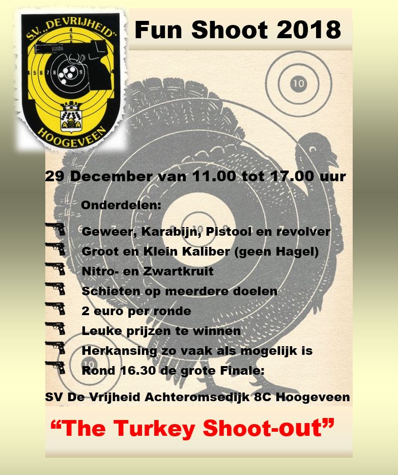 29 dec. 2018 - Xmas Funschoot SV de Vrijheid (Hoogeveen Een van de laatste evenementen dit jaar is de Funshoot bij SV de Vrijheid. U komt hier de disciplines 'Paalschieten' en de 'Turkey Shoot' tegen. Het spektakel wordt gehouden van 11.00h - 17.00h. op de 50 meter baan en zowel zwartkruit als nitro schutters zijn meer dan welkom! Adres: Achteromsedijk 8C, 7903 TL Hoogeveen.