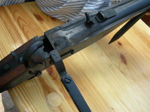2) Kantelengeweer techniek Om te laden wordt eerst deze arm losgehaald van van de kleine pin die u aan de linkerkant van de loop ziet zitten