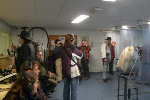 Baancommandant Hildo is als vrijwilliger hulpje-baancommandant naast baancommandant Lammert. Dat doet hij liever dan achter de bar staan. Wat praten met de deelnemers, bij wapenstoring helpen wanneer dat mogelijk is en alles zo veilig, vlot, efficiënt en prettig mogelijk laten verlopen voor alle deelnemers. Ondanks zijn soms warrige uitstraling, Hildo doet zijn best! Vrije baan interpretatie Series worden uitgegeven voor een bepaalde tijd op een bepaalde baan. Bij SV De Vrijheid passen de baancommandanten dat aan al naar de toestand van het moment. Als u op baan 3 moet schieten, maar baan 2 komt eerder vrij: ga maar lekker op baan 2 staan, want dan kunt u alvast beginnen. Op die manier wordt de baancapaciteit optimaal benut en blijven wachttijden minimaal en kunnen de meeste schutters binnen de gelimiteerde tijd schieten. Komt iemand vijf minuten te laat, geen probleem. Voor mensen die dat niet gewend zijn kan dat bijzonder overkomen, maar het systeem werkt best goed. Afzuiging Ondanks de forse luchtverplaatsing van de ventilatoren werkt de afzuiging op de baan helaas niet naar behoren. Dit is goed te merken als alle banen bezet zijn door zwartkruitschutters. Maar er wordt aan gewerkt. Of de huidige plannen van het bestuur tot het juiste resultaat zal leiden is afwachten, maar het is twijfelachtig. Uiteindelijk zal het vast goedkomen. Tot die tijd gewoon de deur open, want luchttoevoer van achteren zorgt voor een onmiddellijke vermindering van rook.