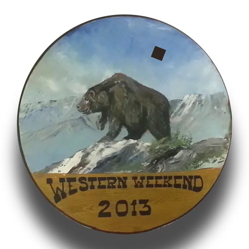 Ereschijf De ereschijf is dit jaar wederom gemaakt en geschilderd door Rieks. En die man kan het, want het is een plaatje, letterlijk. Te mooi om op te schieten eigenlijk, maar dat is nu eenmaal het lot van een ereschijf. Daarom is het te raken punt, de zwarte sticker, buiten de beer geplaatst... 'Misschien dat het beest dan nog heel blijft', meende Dirk. Er wordt door de beste schutter van elke discipline één schot op gelost. Niet met hun eigen geweer, maar met dat van een ander (de Winchester van Dirk), dat maakt het extra moeilijk En, wie was de beste? Na een bijzonder uitvoerige en zeer humoristische beschrijving door Dirk hoe de diverse schutters het toch nèt niet gered hebben, blijkt tijdens de prijsuitreiking dat Stalen André uiteindelijk het dichtst bij de zwarte plakker op de ereschijf is gekomen. Behalve de eer krijgt André ook, verdiend, de ereschijf mee naar huis. Gefeliciteerd Meneer van... Riessen! ___________________________________