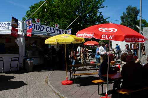 Broodjes Ook weer van de partij, bakker Deeuwes en consorten om de houtoven gestookte deegwaren, zoals de hier uitgestalde smakelijkheden, aan de man/vrouw te brengen. En ze hebben de houtoven nu aardig onder de knie.