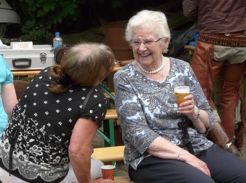 En we nemen er nog eentje! Een westernweekend kan heel gezellig zijn en leeftijd is niet van belang. Het weer is op zaterdag uitstekend en een biertje is dan best lekker.