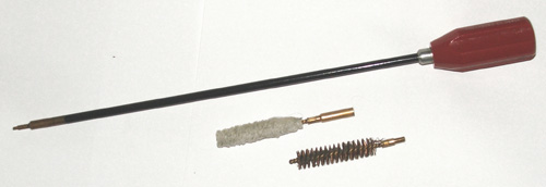 Jachtgeweer schoonmaakset Kompleet setje voor een kaliber 12 loop en het ook precies de goede maat voor de .69" loop van Betty de musket! Het probleem met poetsstokken is vaak de gebruikte draadsoort. Deze set is niet uitwisselbaar met onderdelen van Hildo's andere poetsstokken. Ook belangrijk: Houten stokken zijn niet het perfecte materiaal voor een poetsstok omdat rommel van de loop in het hout gaat zitten, wat vervolgens de loop doet slijten aan de monding door de schurende werking van de poetsstok. Als de loop eenmaal een beetje een 'trompetvorm' gekregen heeft, zal het wapen nooit meer goed kunnen schieten. Betty schiet toch al beroerd, dus dat maakt niet zoveel uit. Overigens, u kunt ook opzetstukken voor de loop krijgen die ervoor zorgen dat de poetsstok de loop niet kan raken. .