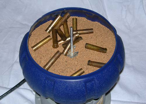 Tumbler Dit is een elektrisch trilapparaat. Er zitten kleine korrels walnootschalen in en als u de stekker in het stopcontact steekt gaat de hele toestand trillen. Het wordt gebruikt om, na het handmatig afwassen van de hulzen in een sopje, de hulzen nog beter schoon te krijgen. 'Echt absolute noodzaak is het niet maar wel verrekte handig', meent Hildo. Twee uur tumblen en de hulzen zijn superschoon.
