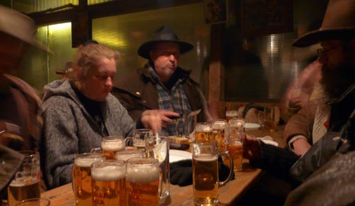 Clubhuis SV Düring Met een biertje, uiteraard na het schieten, een beetje verwarming en goed gezelschap kan er niets meer mis. Interessante gesprekken waarbij Hildo erachter komt dat er misschien toch nog hoop is voor zijn niet erg scherp schietende Rolling Block geweer.