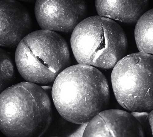 27 februari 2010. De ballentest Hier ziet u Hildo's .457" kogels voor de .44 voorlaad revolvers. Een ronde kogel moet rond zijn, maar zijn ze dat wel altijd? Soms is een giettang niet altijd goed gesloten, dat lukt prima met de Lee gietmallen, en het resultaat is een kogel die niet goed op maat is of eruit ziet alsof er twee helften een beetje scheef tegen elkaar aangeplakt zijn. 'Ach, wat maakt het uit, hij vliegt wel'. Dat was wat Hildo tot voor kort dacht. Maar, als u dan toch een wedstrijdje staat te knallen is het wel zo leuk dat de kogels ook een beetje meewerken, en zoveel moeite is het niet. Test procedure Als u wat kogels in een plastic bakje stopt, die overgebleven is van een maaltijd afhaalchinees, dan heeft u het perfecte gereedschap voor de test. Een nieuw gegoten kogel is zilver van kleur. Hildo rammelt wat ballen wat rond in het plastic bakje en ze veranderen van zilver naar een grijze kleur, maar alleen waar ze elkaar raken. Een mooie ronde bal raakt de andere ballen over de gehele oppervlakte. De ballen zijn goed als ze egaal grijs zijn. Is er nog een strookje zilver te bekennen dan betekent dat dat de betreffende bal niet goed rond is. Waarom niet? Omdat Hildo niet opgelet heeft en de giettang niet goed gesloten is geweest tijdens het gieten.