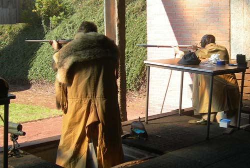 Musketierschieten... Nieuwe discipline! Het zogenaamde musketierschieten is een nieuw ingevoerde discipline, niet van de KNSA maar van SV de Musketiers. Net als vroeger, rond 1600, toen de musketiers hun lontslotwapen op een steun plachten te leggen om de musket te ondersteunen. De afstand is wel 100 meter en daarmee hadden de originele musketiers, met hun gladloops wapens, er vast weinig van gebakken. Hildo heeft ditmaal niet meegedaan maar volgend jaar is hij bij de discipline musketierschieten van de partij! |