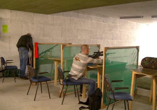 100 meterbanen De Versen is voorzien van drie van deze 100 meter banen met vier schietpunten op elke baan, het complex zit derhalve zeer ruim in 100 meter banen. Er kan liggend en staand geschoten worden. Worden de kaarten halverwege neergehangen, dan heeft u een 50 meter baan. De baan zelf is van zand, net als de kogelvanger, en er is een looppad in het midden om de kaarten te verwisselen. Elektrisch kaarttransport is niet aanwezig. Het geheel ziet er zeer verzorgd, netjes en goed verlicht uit, zelfs de afzuiging is super. Er is helemaal niets mis mee. Wilt u ook eens op de 100 meter laten zien wat u waard bent?: De banen zijn te huur voor individuele schutters. 25 meter baan Vandaag niet in gebruik. Met vijf schietpunten niet overbemeten, de nadruk is duidelijk gelegd op de 100 meter.