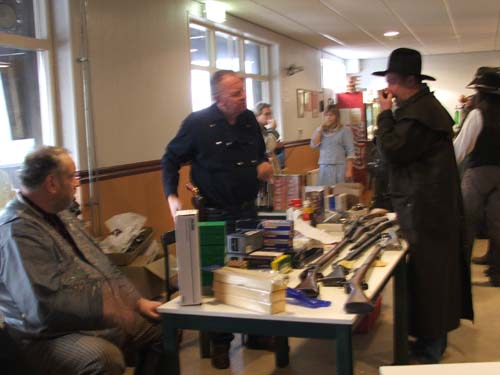 Zwartkruitschutters De club loopt niet over van de zwartkruitschutters, maar er zijn er wel een stuk of wat, en Bertil, u ziet hem hier aan de koffie, is er eentje van. Onlangs begonnen met een Colt Dragoon en een Winchester is de volgende, met dank aan de westerns van weleer. Hij heeft er lol in, en onderschat het niet, dat is belangrijk. Het lijkt er zelfs op dat Bertil binnenkort nog wel eens opduikt op een zwartkruitdag of westernweekend, 'Een hoed en laarzen heb ik al', verklapte hij.