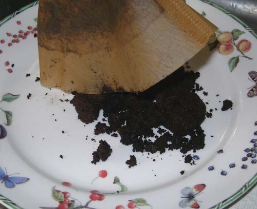 Koffiedik voor de 12.7 x 44R! Koffiedik, of koffieprut zo u wil, is een uitstekend middel om de ruimte tussen kruit en kogel op te vullen wanneer u wenst te schieten met een gereduceerde lading. Het spul wel eerst goed drogen op de kachel uiteraard. Het wordt regelmatig gebruikt als vulmiddel want het is gratis, prima te doseren en het veert minder dan Bambix. Bovendien is Bambix lekkerder dan koffiedik. Cous-Cous heeft Hildo eerder al eens geprobeerd in de 45-70 en hij loopt er niet warm voor. Het lijkt wat te smelten in de loop en geeft draderige overblijfselen. Griesmeel wordt ook vaak gebruikt. In principe is er met van allerlei vulmiddelen te schieten, u kunt het haast zo gek niet bedenken.