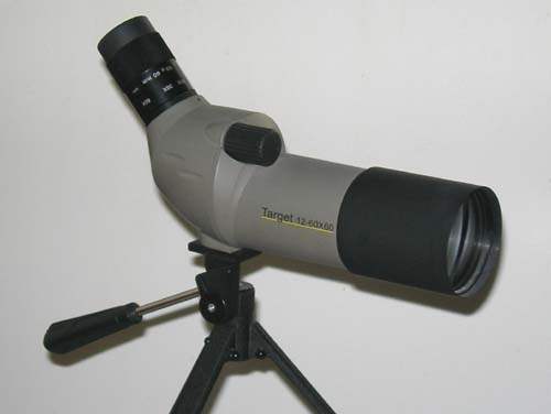 12-60 x 60 Bynolyt Target. De baankijker Deze Bynolyt baankijker voldoet uitstekend! Hildo heeft ´m al een jaar, maar heeft het ding nog nooit met u besproken. Met ruim 160 euro is deze Taiwan-kijker geen superkoopje. Het is zeker geen topklasse, maar wèl goed besteed geld want bij een gemiddelde vergroting zijn kaliber .45 gaten op 50 meter, en zelfs op 100 meter tijdens deze Quigley Cup, prima te zien. En daar gaat het om. De kijker is niet groot, niet zwaar, compleet met tafelstatief en een beschermende draagtas. Gezien de handzame grootte is Hildo dik tevreden met de prestaties. Sales gimmick Staar u niet blind op de maximale vergroting, zeker niet bij een relatief kleine lensopening. De 60-voudige vergroting van deze kijker is meer een sales gimmick dan wat anders, want het beeld wordt dan wel erg donker en onduidelijk en u ziet niet meer dan bij een wat minder sterke vergroting. Als u een klein beetje ervaring heeft met sterrenkijkers, net zoals Hildo, dan weet u hoe de combinatie (niet) werkt bij goedkope kijkers en grote vergrotingen. Missende lensdoppen De kijker is niet voorzien van lensdoppen, kon er niet meer van af waarschijnlijk, jammer. Bij de voorste lens maakt dit Hildo niet zoveel uit, maar het achterste 12-60 zoomoculair raakt snel vervuild tijdens het schieten met zwartkruit. Of gloeiende zwartkruitresten eventueel in het glas van het oculair zouden kunnen inbranden weet Hildo niet, hij heeft er nog niets van gemerkt. Hij is nog op zoek naar een passend dopje, dat hij even op het oculair kan doen voordat hij de trekker overhaalt. Afgeleid Tenzij Hildo met nieuwe kogels, kruit, ladingen bezig is of dingen aan het afstellen is, vindt hij het gebruik van een baankijker niets toevoegen. Het leidt erg af van het schieten zelf. Andere schutters zien dat anders. Er zijn er bij die na ieder schot moeten kijken. 'Een soort van dwangmatige behoefte om de score te zien', vermoedt Hildo. Als het gat er in zit, is het toch al te laat om er nog wat aan te doen. Als u na een blik in de kijker begint te corrigeren, ligt overcorrigeren op de loer en dan wordt het groepje groter en liggen de uiteindelijk scores vaak weer lager. Quigley Cup Op de 100 meter redt deze kijker Hildo van de laatste plaats. Na wat gedraai aan het tunnelvizier en aan het diopter zelf tijdens de schietserie lijken de kogels uiteindelijk aardig goed terecht te komen en gaat het Hildo, zijn schietkunsten kennende, redelijk voor de wind.