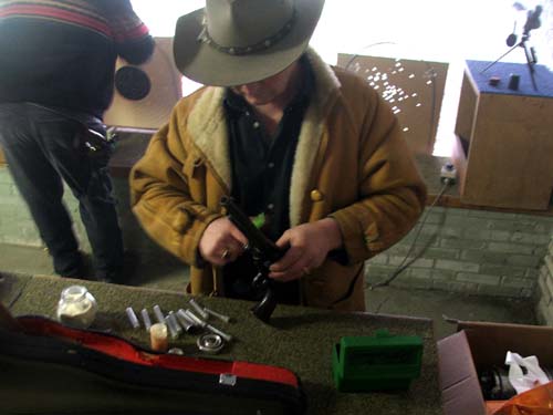 R&S Robbie Sommige mensen schieten met antieke wapens, zoals deze heer hier boven dat doet met een Rogers & Spencer. Bedachtzaam laadt hij het wapen. De revolver uit 1865 doet helemaal niets onder voor een gloednieuwe replica van nu, bewijst Robbie. Zijn groepjes zijn niet slecht! ___________________________________