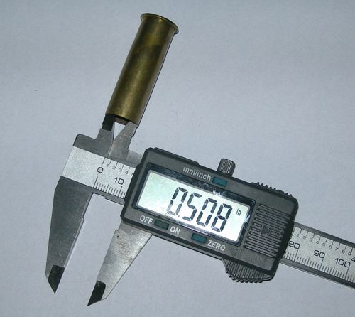 Hulsmond .508 binnendiameter Soms 507, meestal 508 tot maximaal 509. Verder naar binnen wordt de huls opeens ruimer. Hoeveel het over de volledige lengte is kan Hildo natuurlijk niet meten, maar het wordt al snel .510". Da's in ieder geval zat ruim voor de Hensel.