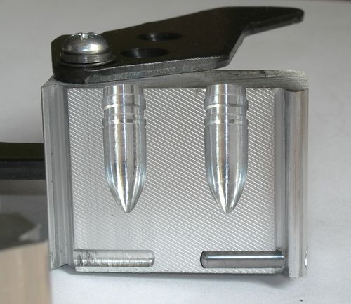 6 april 2015. Lee .312-155-2R gietmal voor Olga Deze had Hildo al een poosje liggen. Hier kunnen kogels mee gegoten worden voor Olga, dus voor de 7.62x39 patroon. De spoed in de loop van Olga is vlot, dus gehard lood is noodzakelijk. Zelfs dan nog verwacht Hildo dat hij tegen de minimale lading aan moet gaan zitten met snelste kruit wat voor deze patroon gschikt is. Het opgegeven gewicht van 155 grain is ook een stuk zwaarder dan de 124 grain van de standaard volmantel kogel.