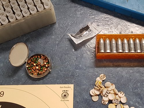 3 april 2019. Zes series om het goed te maken Vorige week was het razend druk op de pistoolbaan, zo druk dat Hildo niet aan schieten toekwam. Da's 180km voor Piet met de korte achternaam. Woensdagavond is de drukste schietavond en wellicht is het mogelijk om op een andere dag nieuwe schutters op te leiden. Immers, jonge schutters zijn goed voor het voortbestaan van de club en de schietsport in het algemeen maar het de oude garde die nu de rekening betaald en staat wel iets tegenover, kunnen schieten is wel het minste. De kaarten Allemaal rond de 75 op één uitschieter van 85 na. Misschien gaat het langzaam de goede kant weer op. S&B primers Nog allemaal geladen met Sellier & Bellot primers, de Muroms komen later.