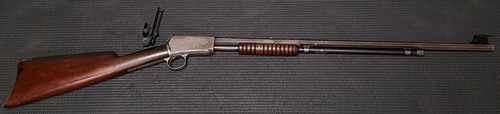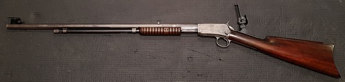 3 juli 2019. Winchester model 1890 in .22 short Uw schouder heeft het niet zwaar tijdens het schieten met dit geweer. Het kaliber .22 short is nog korter dan dat van 22 Long Rifle en het schiet duidelijk rustiger en stiller. Het is voorzien van een relatief lange 24" oktagonale loop, toch is het geweer mooi in balans en niet erg zwaar. Model 1890 is vanaf 1890 Deze Winchester is gemaakt van 1890 to 1932 en er zijn uiteindelijk naar verluid ongeveer 849.000 geweren geproduceerd. Heel veel geweren gewoon gemaakt om leuke dingen mee te doen en plezier aan te beleven en dit is er eentje van. Dit geweer is gebruikt om recratief te schieten op markten, kermissen in een schiettent met speciale kogels die snel verbrokkelden om het gevaar van richochets te vermijden, of lekker schieten in de tuin, schuur of huis op je vrije dag. Ongeveer zo zoals wij dat in Nederland met een luchtbuks doen. Takedown Het geweer is een take down versie, dat betekent dat het snel door de enkele schroefknop los te draaien, aan de linker kant boven de trekker, in tweën te delen is. Gemakkelijk om mee te nemen en vroeger in Nederland en België was dat naar verluid een handige optie voor een stropersgeweer. Hildo kan zich er wat bij voorstellen maar dan wel in een wat groter kaliber.