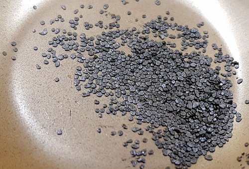 De Chassepot kogel gieten Er lijkt niets mis mee. Helaas echt makkelijk gieten doet het blok helaas niet want het kunstzinnige 'ontluchtingswerkje', wat zowel aan de binnen als buitenkant van het blok zit, ontlucht niet voldoende. Het gat in de snijplaat is groot genoeg maar het blok is door de trage ontluchting nauwelijks snel genoeg te vullen omdat het lucht niet snel genoeg kan ontsnappen. Omdat het lood dus minder snel naar binnen gegoten kan worden liggen rimpelkogels, doordat het lood teveel afkoelt tijdens het gieten, op de loer als u niet heel erg uitkijkt. Beetje jammer aan deze verder fantastische gietmal want de uitval door het iets trage vullen blijkt groter dan normaal. In feite is rimpelkogels gieten is iets wat nooit mag kunnen gebeuren, zeker niet met een stalen mal als ie eenmaal op temperatuur is.