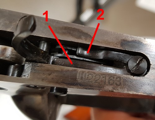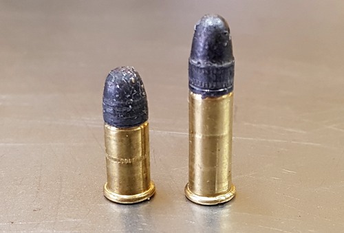 3 juli 2019. De .22 short binnenkant Op de foto's hierboven ziet u de verschillen in patroon tussen de .22 short en de .22LR (Long Rifle), wat nu de gangbare .22 kleinkaliber patroon is. U ziet ook dat de kamer ondiep is. De .22 Short past maar de 22LR steekt een stuk verder uit en is in dit geweer niet te kameren. Van Flobert naar 22 short De 22 short rimfire (randvuur) patroon is ontwikkeld en op de markt gebracht door Smith & Wesson voor een in 1857 uitgebrachte .22 short revolver van S&W. Niet dat u nu denkt dat Winchester de rimfire patroon bedacht heeft, nee hoor, dat is gewoon gebeurt in Europa. Patenten daarvoor zijn uitgegeven in 1831 aan de Engelse heer J.A. Robert met een papierpatroon die onstoken werd door tegen een pin te slaan die aan de achterkant uit de huls, dus niet zijwaarts zoals de pin fire van Casimir Lefaucheux. In feite hielden in die jaren heel veel verschillende mensen zich bezig om tot een praktische soort van eenheidspatroon te komen. Flobert de voorloper In 1849 kreeg de Franse meneer Flobert een patent op een pas écht goed idee, gezien het succes van dit systeem in de volgende jaren. Een patroon waarvan de messing huls geprimed is met slagsas in de bodem zonder uitstekende delen met een rond kogeltje er bovenop. Een kant en klare patroon om zo mee te schieten, het eerste rimfire systeem. Hildo ziet het verschil niet echt tussen de Flobert en rimfire behalve in kogel diameters. De Flobert was er eerst in 6 en 9 millimeter, later kwamen er meer bij. Sommige zijn niet voorzien van kruit en gedacht voor schijfschieten binnenshuis. Met iets kruit erbij en in een geweertje komen daar kersenetende vogels in de tuin en ratten in de schuur bij. Pinfire van Casimir Lefaucheux De ontwikkeling tot eenheidspatroon leverde onder anderen het pinfire systeem op. Ook al voorzien van een messing huls, waar aan de zijkant een pinnetje uitsteekt. Dat pinnetje zit aan de binnenkant tegen een percussiekapje aan en als u er tegen tikt gaat de patroon af. Dit patent dateert van 1835, is ook behoorlijk succesvol geweest. Eerst alleen geweren en pistolen. Later in de 12mm Lefaucheux de Marine Mle 1854 als eerste revolver voor het Franse leger, een ontwikkeling van zoon Eugéne. Dit was in feite een naar penvuur geconverteerde Colt 1851 met wat optische aanpassingen. Vader Casimir, die jarenlang vergeefs geprobeerd had zijn producten aan het leger te verkopen, was al in 1852 overleden. In later jaren zijn er en masse kleine penvuur pistooltjes en revolvertjes gemaakt voor, met name, zelfbescherming. Volgende week gaat Hildo met zo'n, iets nieuwer en klein, penvuur revolvertje schieten!