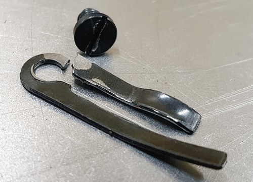 3 augustus 2019. Einde van de Norinco 1911 A1 Tijdens een schietserie gaat het opeens niet meer helemaal lekker. Na het laatste schot is de kogel weg maar gaat de slede niet meer open, de slede zit shocking klem en is niet meer los te krijgen. Vreemd hoor. Slendebroek Beilen Wapenhandel Slendebroek in Beilen is waar de Norinco gekocht is en, zo weet Hildo, hij heeft een lade met allerhande 1911 onderdelen. Het probleem Het was even lastig maar uiteindelijk is de Norinco los. De ketting (barrel link), het palletje wat onder aan de loop zit, blijkt in twee stukken gebroken. Eerder ook al een keertje gebeurt. Ditmaal zijn tijdens het laatste schot de onderdelen van de ketting tussen loop en kast gekomen. De loop is duidelijk zichtbaar krom, ook de slede en kast hebben natuurlijk een flinke klap gehad. Het is einde verhaal voor de Chinese Norinco, die de prullenbak ingaat.