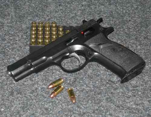 CZ75 9mm pistool Voordat er geknald kan worden is het natuurlijk eerst tijd voor instructie, en met name veiligheid. Uitstekend want voor belangrijke dingen neemt zowel Hildo als zijn instructeur, alle tijd. Omdat Hildo nog nooit met een pistool geschoten had is het toch even opletten want de techniek van laden/ontladen en spannen is volledig verschillend vergeleken met die van een revolver. Dit pistool, in het kaliber 9mm, schiet ook anders. Wat het precies is weet Hildo niet. Het schot klinkt vrij hard en schel (peng), echt mooi klinken doet het niet. De doffe langgerekte zware dreun van grootkaliber zwartkruit wapen (bwoooaaff) blijft onovertroffen hoor! Ook de terugslag bij de 9mm is snel en tamelijk abrupt maar niet pijnlijk. Ook na meerdere schoten krijgt u er geen last van uw hand van. De druk om de trekker over te halen is vrij hoog, dat schijnt zo te horen, en dat is even wennen. Het schieten zelf gaat verder prima en kogel na kogel vliegt de loop uit. Het magazijn is groot, in ieder geval meer dan 10 patronen. Zo kun je er rap aardig wat doorschieten op een avond. Hildo heeft een doosje van 50 stuks gekocht. Het is dat Hildo wat later kwam deze avond, omdat de ketting van zijn motor onderweg knapte, anders waren deze 50 zeker al op geweest.