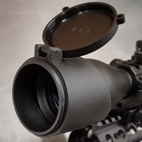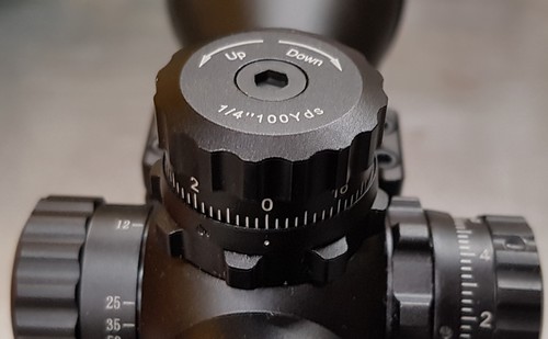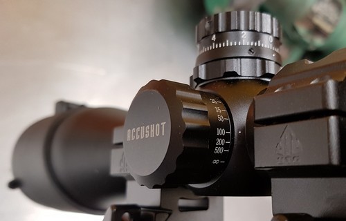 Vergrotingsfactor De zoomknop zit direct voor het batterijcompartiment die de verlichting van het draadkruis van stroom voorziet. De knop draait met een behoorlijke weerstand, zoals alle knoppen, het lijkt een verstandige zet om het verlopen van instellingen tijdens het schieten of transport zoveel mogelijk tegen te gaan.