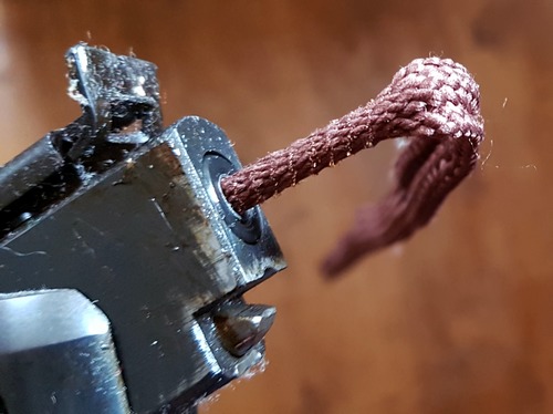 2 april 2020. Barbara's 223 huls, klem gezeten? Nu heeft Hildo nog steeds niet veel verstand van een AR15, het kaliber 223 of van moderne geweerpatronen in het algemeen, maar dit lijkt hem niet goed. De huls wordt de trekken en velden ingeramd, u ziet de vervormende afdrukken van de velden in de hulsmond. De huls moet toch kameren op schouder van de huls, dacht Hildo, deze gaat in ieder geval te diep de loop in. De huls is van Prvi Partisan, nieuwe fabrieks munitie. Met de lengte van 1.755.5" (44.57mm) lijkt niets mis. Zou er iets mis zijn gegaan met de kamer in de loop? Hildo gaat informeren! (Note: zie 4 april 'Domme Hildo').