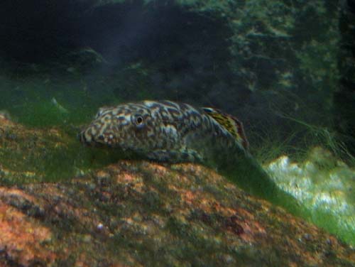 Plastic grot Een maand of twee geleden aangeschaft. Deze grot is van plastic, maar ziet er uit als een echt stukje steen. Gemakkelijk schoon te maken als het moet, maar als u dat niet doet dan ziet het er alleen nog maar natuurlijker uit. Voor Albert, de Gastromyzon Marble Albert is een plakvisje van een centimeter of zes lang. Een typische bodembewoner die zich in de èchte wereld pleegt op te houden in snelstromende riviertjes en zich daar aan stenen vastzuigt. In het aquarium zit ie het liefst verstopt en plakt af en toe aan de aquariumruiten. Probleem met Albert Het probleem met Albert is van een behoorlijk ernstige aard. Hij stelt zich zeer onverdraagzaam op tegenover de Corydorassen. Aan zowel de Corydoras Panda als de Corydoras Leucomelas heeft hij een bloedhekel. Het is duidelijk een 'dit is mijn en niet jouw territorium'-situatie, iets wat vaker voorkomt bij gelijksoortige vissen (zoals bodembewoners dat zijn). Wellicht heeft het er mee te maken dat ze de andere vis als concurrent zien. Het liet Hildo's eerste Gastromyzon volledig koud of er wel of geen Cory's rondzwommen, maar met Albert ligt dat anders. Wellicht dat Albert een mannetje is en de vorige, iets kleinere, een vrouwtje. Af en toe plakt Albert aan de aquariumruit en wappert met zijn staart een gat in de grond. Dat heeft te maken met de drang tot het maken van een nest, heeft Hildo ergens gelezen, en dat schijnen alleen de mannelijke exemplaren te doen. In ieder geval: de aggressiviteit van Albert werd dusdanig dat hij, zodra hij een Corydoras zag, er achteraan ging en daarmee pas stopte op het moment dat deze uit zijn blikveld verdwenen was. Op een gegeven moment had Hildo het met Albert gehad, want zoiets is niet leuk voor de Corydorassen maar ook niet voor de algemene rust in het aquarium. Aqua 40 Gelukkig heeft Hildo nog een tweede aquariumpje, een Aqua 40, destijds aangeschaft om dienst te doen als quarantainebak. Dat is de bak waarin Albert nu verblijft. Lees links verder over Albert's Aqua 40.