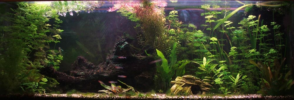 24 december 2012 Het leven van een aquariaan gaat soms niet over rozen. De vorige bladzijde is van mei 2011. Heel 2011 en het grootste gedeelte van 2012 is een drama geweest, of in ieder geval een eindeloze worsteling met de niet aflatende algengroei. Uitermate vervelend en het vergt veel doorzettingsvermogen om niet te stoppen met een dergelijk aquarium. Geen zin meer? U dacht natuurlijk al... 'Die Hildo heeft het eindelijk opgegeven', maar dat is niet het geval. Alleen de lust tot schrijven ontbrak. Alle probeersels: vaker verversen, wel of geen filter verversen, wel of geen toevoegingen aan het water toedienen, alles lijkt de revue te zijn gepasseerd. De lol raakt er langzamerhand van af en door er over te schrijven, beleeft u alles nogmaals. In dit geval had Hildo daar geen behoefte aan. Het was een kwestie van geduld, blijkt nu, voordat het tij zou keren. De laatste maanden van 2012: De alg is weg! Het licht begon, figuurlijk, zomaar te schijnen. De alg verminderde en op een gegeven moment was er nog nauwelijks wat weg te halen. Kijk, dát geeft de aquariaan weer moed! Het aquarium is nu al iets van twee tot drie maand weer mooi stabiel. Van overmatige alggroei is geen sprake meer. Waar lag het algprobleem nu aan? Een aquarium is een vreemd iets. Niet alles lijkt te verklaren. U kunt water testen tot u er een punthoofd van krijgt, maar toch blijft het onduidelijk wat het evenwicht in het aquarium in stand houdt of verstoort. Een aquarium is een biotoop, een natuurlijke levensruimte waarbij alles in een bepaald evenwicht met elkaar moet zijn. Als het evenwicht goed is, dan loopt alles als op rolletjes. Maar als er iets in de war raakt, dan kan het een drama zijn. Wàt het probleem in Hildo's aquarium precies geweest is, blijft onduidelijk. Om met de woorden van de niet vreselijk leuke cabaretier Jochem Myer te spreken: 'Ik snap er niks van van!'.