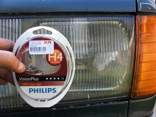 1) 10 oktober 2010. Lampje stuk Met de teller op 393.723km begeeft de linker gloeilamp het. Hildo heeft wat last van staar, dus voor een lamp die wat extra licht geeft heeft hij wel wat over.