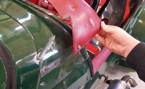 25 april 2019. Knoeiwerk! Ziet u het gat in de cardantunnel waar alle stroomkabels, ruitenwissersproeierslang en de kilometertellerkabel doorheen komen? Dit kan niet gedaan zijn door de originele bouwer, die was te daarvoor te netjes gezien de rest van de auto. Met grof geweld opengeknipt aluminium met, als ergste, onafgewerkte scherpe randen waar alles doorheen gaat! Degene die hiervoor verantwoordelijk is mag zich doodschamen. Dit zou zelfs Hildo te ver gaan.