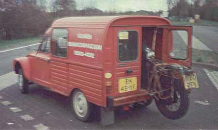 Aca Diana 1984 Gekocht in 1993 voor 650 gulden, met een half jaar APK. Hildo is het al een beetje vergeten, en dat vindt hij helemaal niet erg. De auto is niet guitig, niet grappig en niet leuk. Het was een hopeloos ding met een top van 65km/h als je de wind echt tegen had, voor de wind iets van 85-90. Vol gas en er begon van alles te stinken, rustig rijden door de bebouwde kom en het ding hikte over de weg. Hildo haalde zijn vrouw Ingrid eens op uit Duitsland, met 70km/h(!) over de Duitse autobahn alwaar de auto na veel gehik en gestotter er mee ophield. Gezamenlijk met de trein verder en later heeft Hildo de wagen opgehaald met de motor, een XT 500, die net half achterin paste zonder dat het achterwiel over de grond sleepte. Een eend is een hopeloos substituut voor een automobiel. Naar de sloop gebracht! Ha, ha, ha! Rotding!