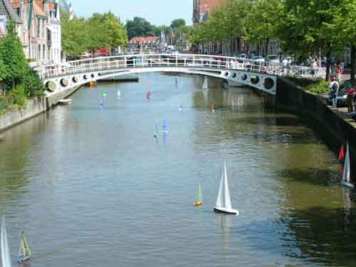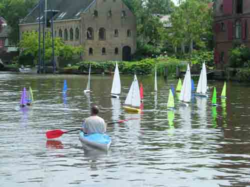 Dokkum rond - 2004 Jaarlijks wordt er in Dokkum een toertocht, voor radiografisch bestuurbare zeilboten, gehouden. Dokkum is voorzien van bijzonder mooi vaarwater, zonder drijvende planten waarin de bootjes verstrikt kunnen raken, en je kunt probleemloos het voormalige vestingstadje helemaal rondzeilen. Fantastisch om te doen en ook nog wat leuks om te zien als je een keer niet naar de boot kijkt.