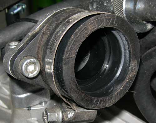 Uitdrogingsverschijnselen Binnenkort dient het inlaatspruitstuk adapter rubber vervangen te worden. Maar de binnenkant is nog goed en valse lucht trekt de carburateur (nog) niet. Hildo heeft nog een nieuwe, die zat samen met een spruitstuk bij het Daytona blok. _______________________________________
