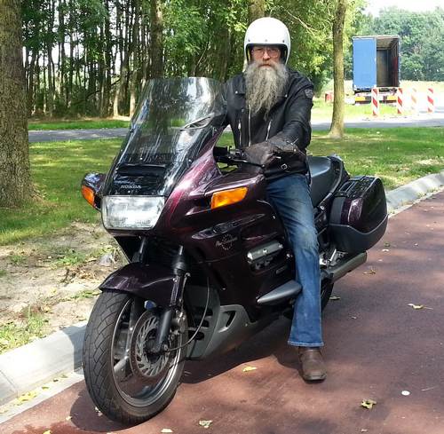 Augustus 2014. Honda ST1100 Pan European uit 1992 Met een investering van 1975 euro comfortabel, vlot en probleemloos lange afstanden afleggen. Daar heeft Hildo deze 1992 Pan European voor aangeschaft en daar lijkt hij nog steeds prima toe in staat ondanks de leeftijd. Op moment van aanschaf 22 jaar oud met maar 48.000 km op de teller. Frisse fiets die nog heel wat kilometers kan verslinden, lijkt het. Of dat daadwerkelijk zo is, zal nog blijken. Enne: waarom geen Harley Touring? Centenkwestie, niet meer, niet minder. Klik hier voor het Pan European verhaal.