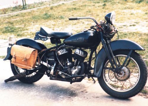 Rond 1990. Een 750 WL uit 1952 Heeft Hildo gekocht en drie maanden mee gereden. In de tussentijd een kapotte dynamo en een keer de koppakking er tussen uit geblazen. De tankschakeling en voetkoppeling was even wennen, maar wat Hildo bij deze motor stoorde was het grote solo-zadel waar hij ontzettend last van zijn rug van kreeg. De snelweg ermee op was ook geen goed idee. Deze WL liep top 120 km/h, maar lekker rijden deed ie op maximaal 80 km/h. Beetje langzaam voor het moderne verkeer. Was meegekomen met een inboedel uit Indonesië en, naar wat Hildo ervan begrijpt van een latere eigenaar, een erg zeldzame fiets waar zelfs Harley zelf interesse voor had getoond om op te nemen in hun museum. Het zal, maar Hildo heeft met zo'n 750 zijklepper, zeldzaam of niet, persoonlijk erg weinig.