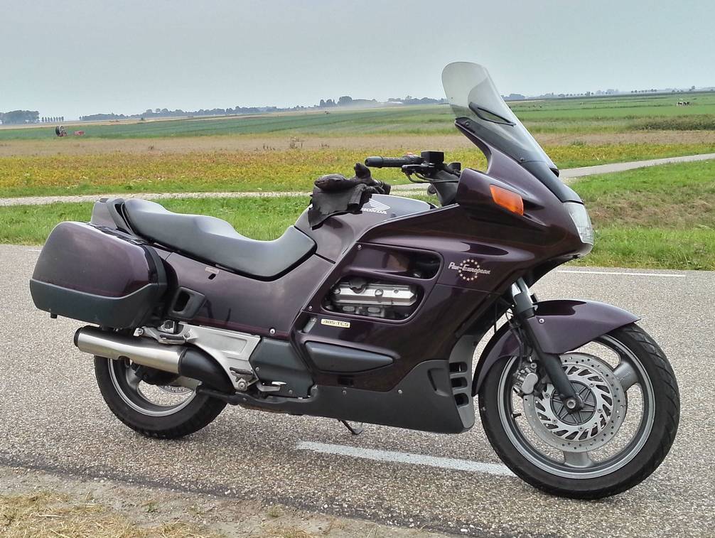2 augustus 2014. Hildo's Honda ST1100! Als Harley-rijder kent u ongetwijfeld de t-shirt tekst nog wel uit de jaren 70: 'Better my sister in a whorehouse than my brother on a Honda'. Wel... FTW en uiteraard... DILLIGAF? Kortom, het maakt Hildo niets uit. Honderd kilometer op Hildo's chopper is geen sinecure. Zeker niet als u ook nog weer terug moet, over eventuele wind, regen en kou nog maar te zwijgen. Sportmotoren zijn leuk als u 18 bent, Hildo ziet ze als speelgoed. Voor serieuze kilometers rijden is een Harley Touring een mooie oplossing, een fijne Street Glide is niet verkeerd. Maar het moet betaalbaar blijven en dat is een Harley niet. Voor betaalbare 1000cc+ tourmotoren met kuip, koffers en cardan-aandrijving lijkt de keus beperkt. Naast de BMW K serie, de Kawasaki GTR1000 en de ST1100 Pan European ziet Hildo niet veel van zijn gading. Geen BMW weer De 1994 BMW K1100 die Hildo in 2009 kocht voor 1500 euro bleek uiteindelijk een financiële strop. Hildo wil geen BMW weer en als u wilt weten waarom, dan leest u het BMW verhaal op deze website maar eens door. Vergeet vooral niet de onderhoudshistorie er op na te slaan De plastic Honda Pan European Hildo weet nog wel dat ze uitkwamen rond 1990. Spuuglelijk. Een grote plastic badkuip met wielen, je zou je er op doodschamen! Nu, in 2014, lijkt de vormgeving best mee te vallen. Nu nieuwe motoren met steeds meer onnodige plastic kapjes en wansmakelijke, drukke en zinloze designelementen worden versierd tot kermisattracties, lijkt Hildo's smaak te zijn doodgeknuppeld. Deze 22 jaar oude Pan European ziet er opeens niet zo afzichtelijk meer uit. Wie had dat ooit gedacht? Frisse fiets met weinig kilometers Dit soort motoren worden nieuw gekocht door mensen die er kilometers mee willen gaan afleggen. Hildo's Pan European is in 2003 ingevoerd en heeft sinds 2004 dezelfde eigenaar gehad, maar die heeft er nooit veel mee gereden. De inmiddels gepensioneerde man kreeg enige tijd geleden een voetprobleem waardoor hij steeds meer moeite met schakelen kreeg, daarom moest de motor weg. Hij vertelde dat hij en zijn vrouw, kort nadat ze de motor hadden aangeschaft, eens flink zijn natgeregend. De motor heeft sindsdien geen drup water meer gezien, en dat is tien jaar terug. De motor is altijd in een garage gestald met een motorhoes er omheen tegen de stof, de hoes heeft Hildo er bij gekregen. De kilometerstand is op het moment van aankoop 48.236 en die lijkt eerlijk te zijn, deze Pan European heeft Hildo meer op intuïtie gekocht dan op wat anders. Smetteloos is ie niet, de motor heeft ooit een valpartij gehad waarbij de binnenkuip beschadigd is, maar het polyester is vervangen. Het is nog best een frisse fiets, alles werkt en Hildo heeft er met name een goed gevoel bij. Anders was ie niet eens aan de proefrit begonnen want op een herhaling van de ervaring met de BMW zit hij niet te wachten.