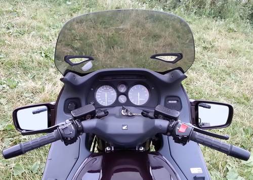 De kuip Wat Hildo betreft laat de Pan European hier wat steekjes vallen. De rijhouding is relatief sportief, naar Hildo's mening een beetje te sportief want hij moet iets te ver voorover hangen om het smalle stuurtje te bereiken. De berijder rust teveel op de armen tijdens het rijden. Zowel de kuip zelf als het windscherm zijn te smal, iets zijwind en u krijgt de volle laag. Iets breder was mooier geweest, maar dan vangt de motor meer wind en ziet deze er, waarschijnlijk de belangrijkste factor, minder sportief uit. De rijwindbescherming bij een BMW K1100 is gewoon allround beter en dat gaat Hildo merken in de winter, maar ook in de regen. De kuipruit is ook niet verstelbaar en bovendien te laag. De ruit is getint, wat geen enkel functioneel doel dient, zeker niet in het donker. Een nieuwe bredere en 7,5 cm hogere ruit van National Cycle staat in bestelling en die gaat het rijcomfort gegarandeerd verbeteren. Warmte Op de dag dat Hildo de motor ophaalde was het 32 graden Celsius, en dat is knap warm. In tegenstelling tot de BMW K1100, waar het al snel ondragelijk heet werd achter de kuip, blijft de rijder op deze Honda verbazingwekkend koel. Vrijwel geen enkele door de motor ontwikkelde warmte weet de berijder te bereiken, ook niet voor het stoplicht. Een absoluut pluspunt... in warm weer. De knieën Er is weinig ruimte en u schuift, net als bij de BMW K1100, naar voren over het naar voren toe aflopende zadel zodat uw broek uiteindelijk strak in uw kruis getrokken is of u met uw knieën klem tegen de kuip zit. De kuip loopt schuin naar buiten af en duwt uw knieën daarmee buiten de kuip uit. De kuip is ook vrij smal bij de knieën: natte koude knieën zitten er in een ander jaargetijde vast in, en dat is jammer. De spiegels Tijdens de rit kijkt u over uw handen in de spiegels en het zicht naar achteren gaat dan onder uw handen door. Helemaal niets van uw armen zit in de weg en dit geeft waarschijnlijk de beste blik naar achteren die Hildo ooit op een motor gehad heeft. Absoluut trillingsvrij door het hele toerengebied zijn ze ook nog. 100 punten voor Honda!