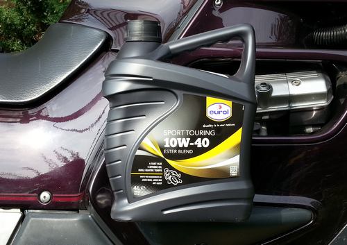 20 september 2014. Olie verversen bij 50.982 km Volgens de vorige eigenaar waren er nauwelijks kilometers met deze motor gereden en had hij de motorolie al twee jaar niet ververst. Tijd voor vers bloed, gewone minerale motorfietsolie van Eurol. Olie voor auto's is niet geschikt, dat geeft mogelijk problemen met slippende koppelingsplaten. Inmiddels heeft Hildo bijna 3000 km met deze Pan European ST1100 getuft en heeft hij geen druppel olie bijgevuld. Het olieverbruik, er is wel iets, lijkt zeer binnen de perken. Het valt Hildo op dat de afgetapte olie nog verrassend blank lijkt, vast een goed teken voor de interne conditie van het blok. Geen plastic verwijderen Waarschijnlijk één van de weinige onderhoudsklussen waarbij geen plastic verwijderd hoeft te worden. De aftapplug voor de motorolie is zo maar toegankelijk. Geen oliefilter vervangen Omdat de vorige eigenaar een Pietje Precies was, in de goede zin van het woord, laat Hildo het oliefilter zitten. Weinig zinvol om het te vervangen terwijl er nauwelijks met de motor gereden is. De volgende keer wordt ie vervangen, daarvoor dient overigens wel wat plastic verwijderd te worden.