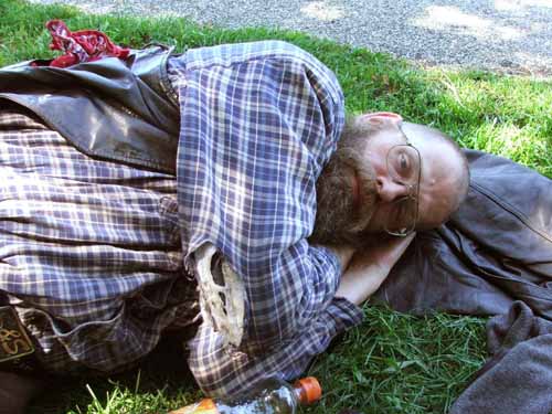 25 mei 2005 Waar Mekka ligt weet Hildo niet, maar wel dat je met gras het acute vet snel van je handen krijgt. Vet is altijd weer een traumatische ervaring voor Hildo. Dus tijd voor een dubbele wodka! Beter de wodka's achteraf. Vooraf heeft Hildo ook wel eens gedaan en hij kan u melden dat dat, al rondzwaaiend en struikelend, heel bijzonder sleutelt. ----------------------------------------------- |