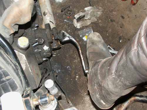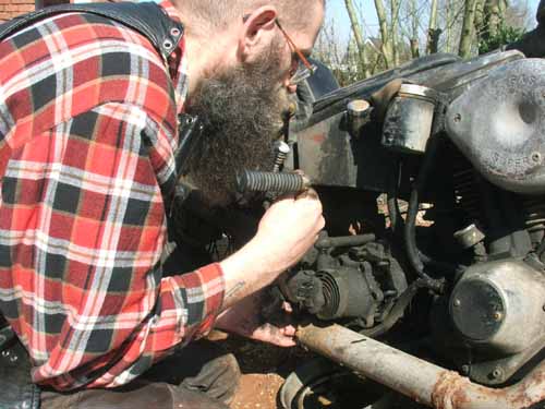 A) 16 april 2006. Kickstart trouble De kickstarter komt niet goed weer terug. Dat is belangrijk, want Hildo is niet in het bezit van een startknop. Een tandwielprobleem waarschijnlijk. Demontage is noodzakelijk.